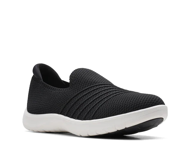 This fresh Cloudsteppers™ style matches a ballet-flat inspired profile to a durable sneaker outsole built with lightweight eva. Its low-cut topline and stretchy textile upper allow for an easy, slip-on fit and layers of cushion soft™ padding with a removable Ortholite® footbed reduce the impact of each step.
