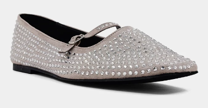 The exquisite AMELIE ballet flats are a contemporary interpretation of a timeless favorite. Crafted from sumptuous faux suede, these flats boast a chic Mary Jane design with pointed toes and an elegant buckle-fastening strap adorned with meticulously handcrafted crystal-like embellishments. Their versatile and comfortable nature makes them the ideal choice for any occasion, effortlessly adding a touch of sophistication to any ensemble.