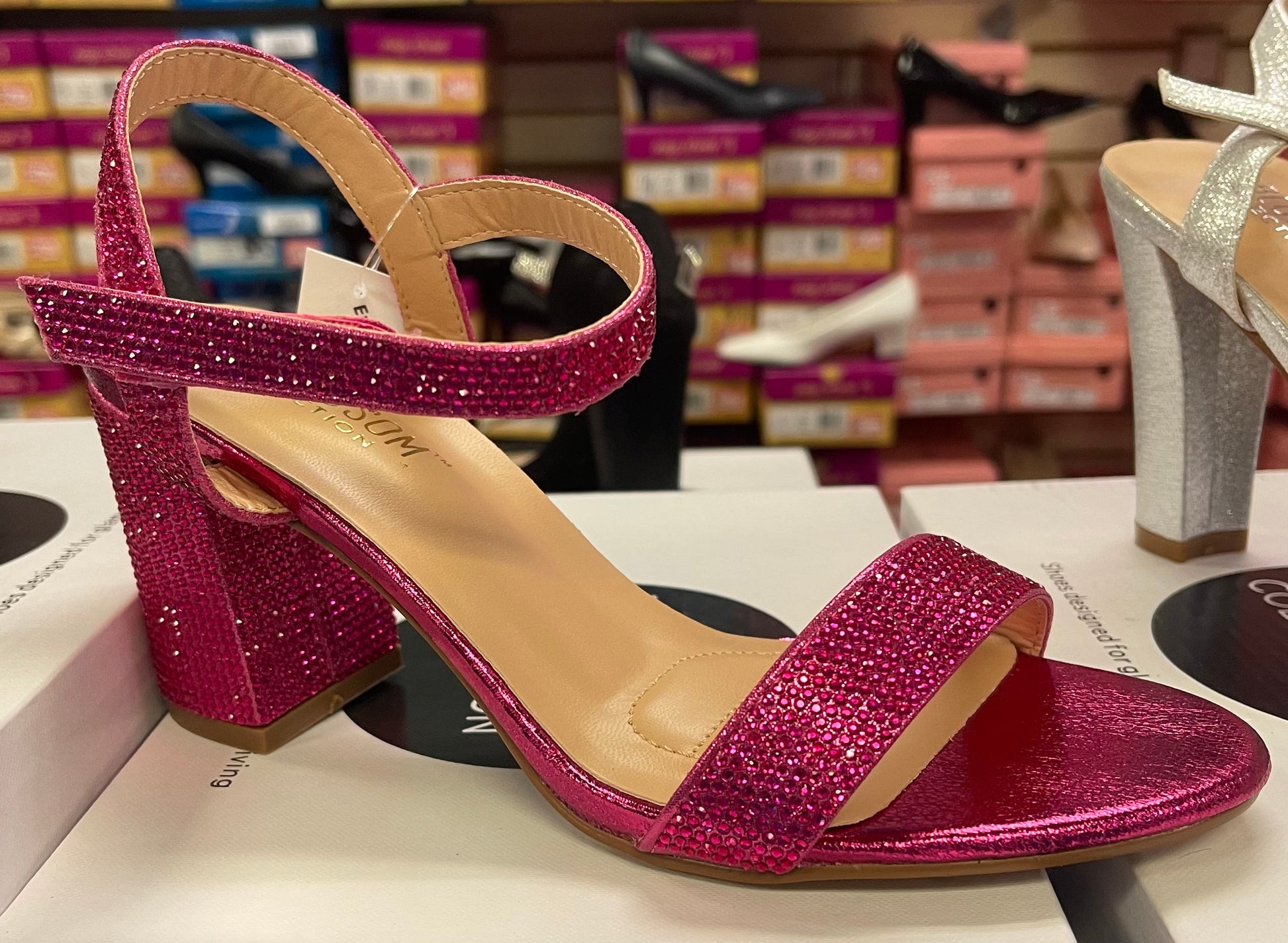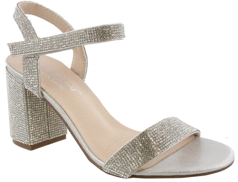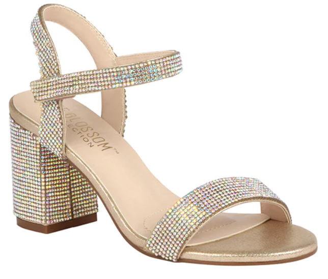 This super cute two inch sparkly heel has an adjustable top! The adjustable strap is made of Velcro, so its super convenient. The heel, adjustable strap, and thin strap running along the toes are all bedazzled with tiny sparkles. This shoe is perfect for formal events like prom and homecoming! This heel measures approximately 3.5 inches tall