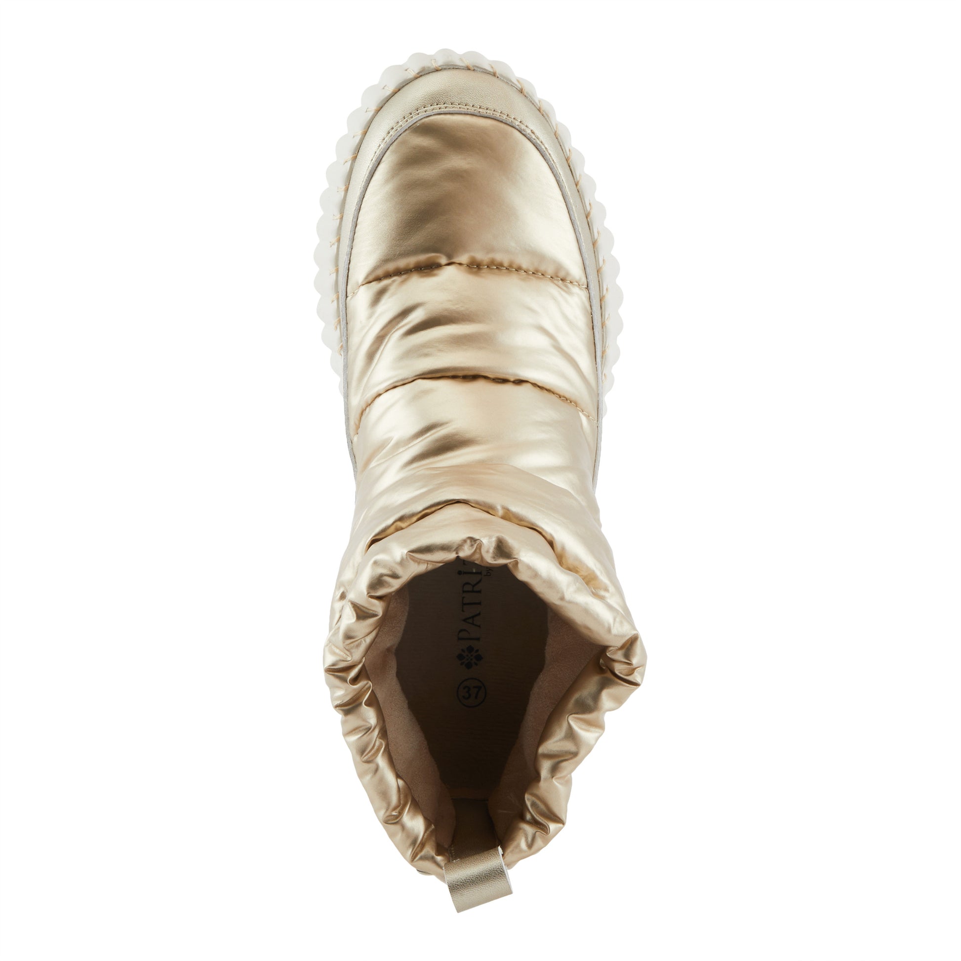 PATRIZIA Style: BESTINSNOW Stay warm and stylish with this ultra-trendy, sport-chic waterproof sneaker boot. Featuring a sleek metallic-inspired upper filled with 90% down and 10% feathers, this boot delivers lightweight warmth without compromising on fashion. The toggle closure at the top with a pull tab ensures a snug, adjustable fit, while the chunky ridged sole provides superior traction and a bold, modern edge. Designed for both function and flair, this sneaker boot is perfect for cold-weather adventures and streetwear-inspired looks.