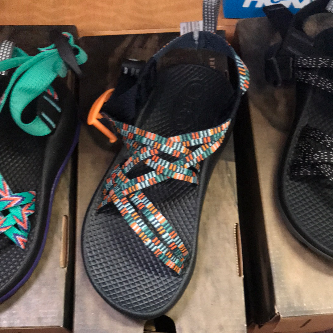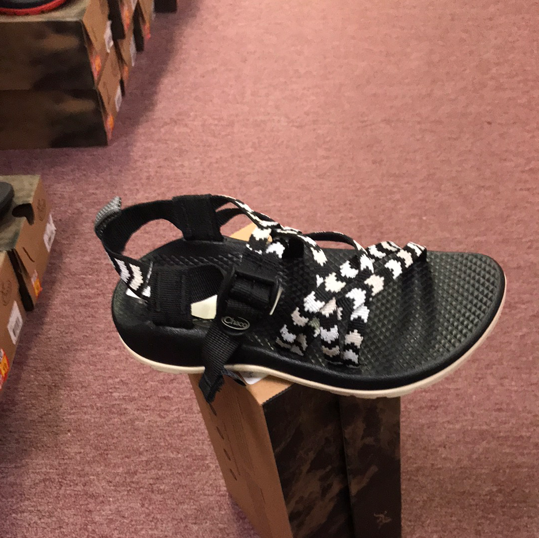 - Double-strapped polyester jacquard webbing upper wraps around the foot and through the midsole for a customized fit