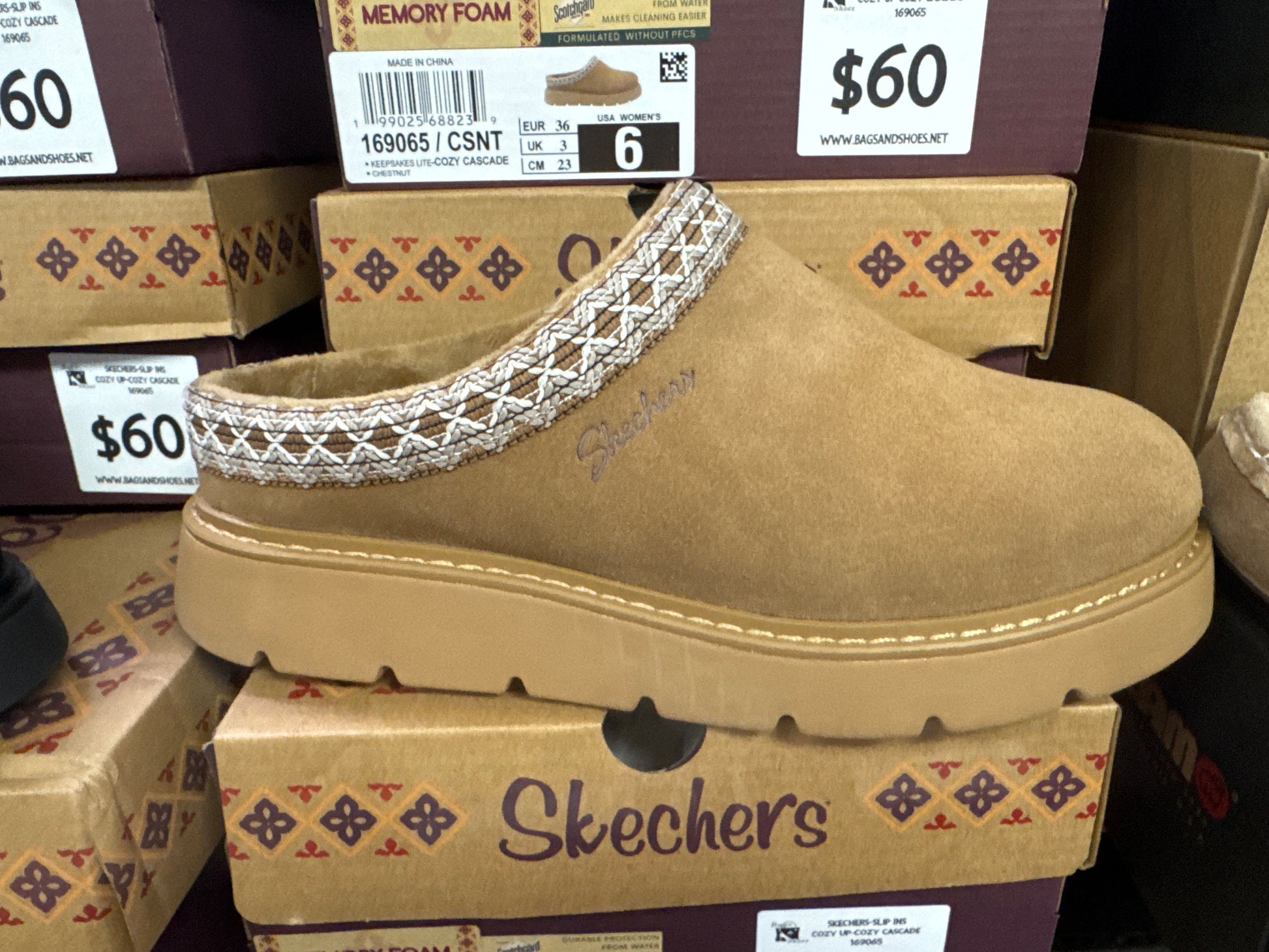 Spend the season in cozy comfort wearing Skechers Cozy Up. This clog-style slipper features a faux-leather upper with faux-fur trim and lining, plus a Skechers Memory Foam™ cushioned comfort insole.