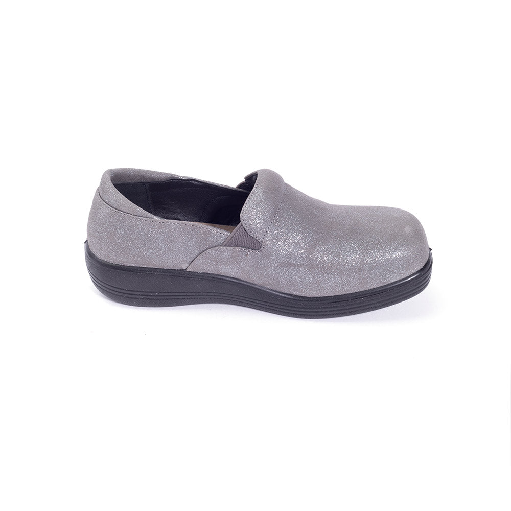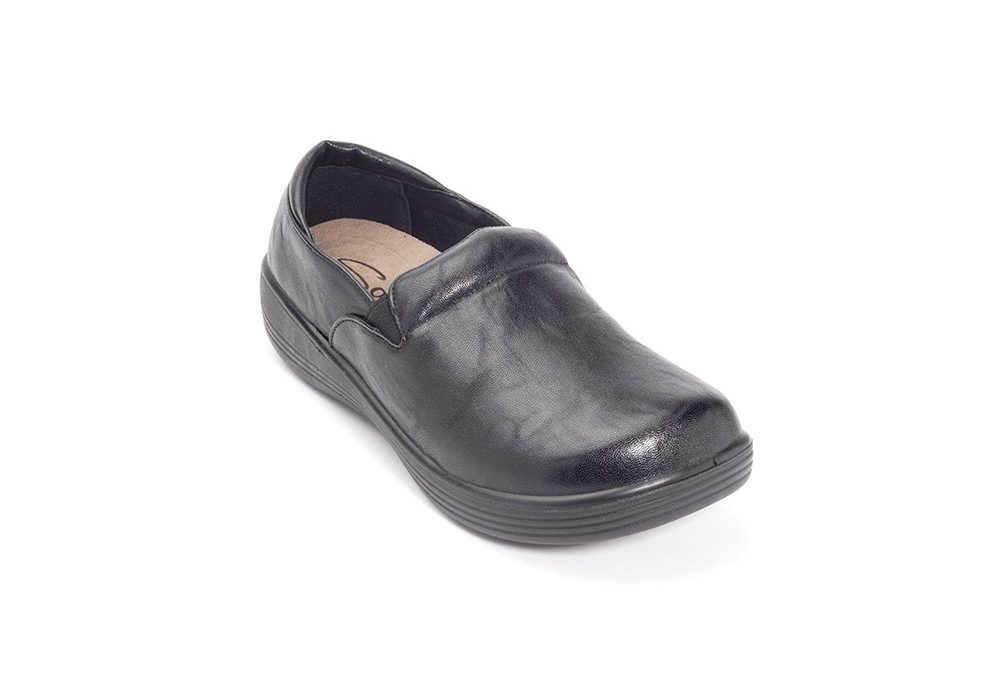 The Daisy Professional Clog features an easy to clean synthetic upper. The aerocushion technical insole, with it’s heel cup and metatarsal pad, offer firm, superior support. It’s lightweight construction provides superior comfort. The steel shank provides arch support while the enhanced toe room and goring allows for added comfort and easy on and off. The leather-lined heel construction enhances durability. For added stability, they also feature a US Certified Slip-Resistant outsole.
