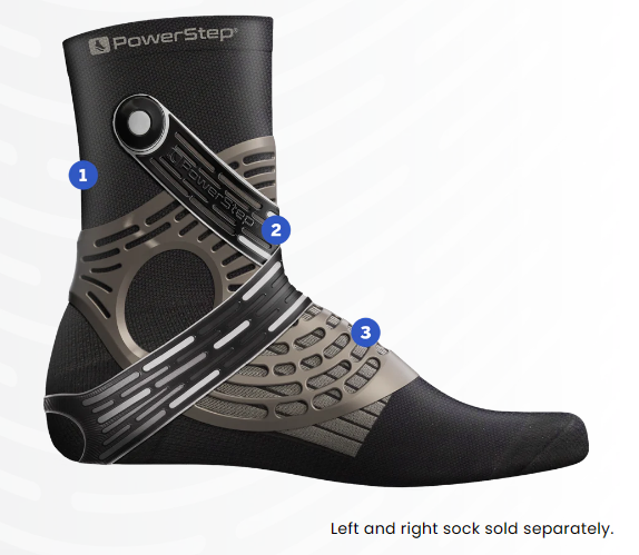 DASS is a stabilizing ankle brace and compression sock in one that delivers ultimate support, compression, and stability. Unlike traditional ankle braces, ours has a flexible design that is lightweight, breathable, and sleek so it can fit inside your shoe. While the compression sock helps reduce swelling and improve blood flow, the flexible brace and stability straps allow for safe, healthy motion and restrict only unwanted movement. An effective ankle brace for sprains, strains, past injuries, and problems with stability, DASS uses PowerStep’s trusted support to get you moving with confidence.