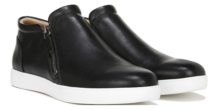 Note to self: Wear this every single day. A comfy sport sneaker has never looked so chic. Faux leather upper with a round toe, comfort collar, side zip closure, and sporty white sole.