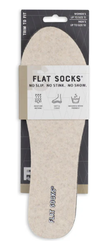 While FLAT SOCKS may look like a shoe insole, they don’t replace your shoe’s insole; they replace your SOCKS! At the end of the day you can treat them like socks, too—throw your FLAT SOCKS in the washer (and dryer) as often as you like!