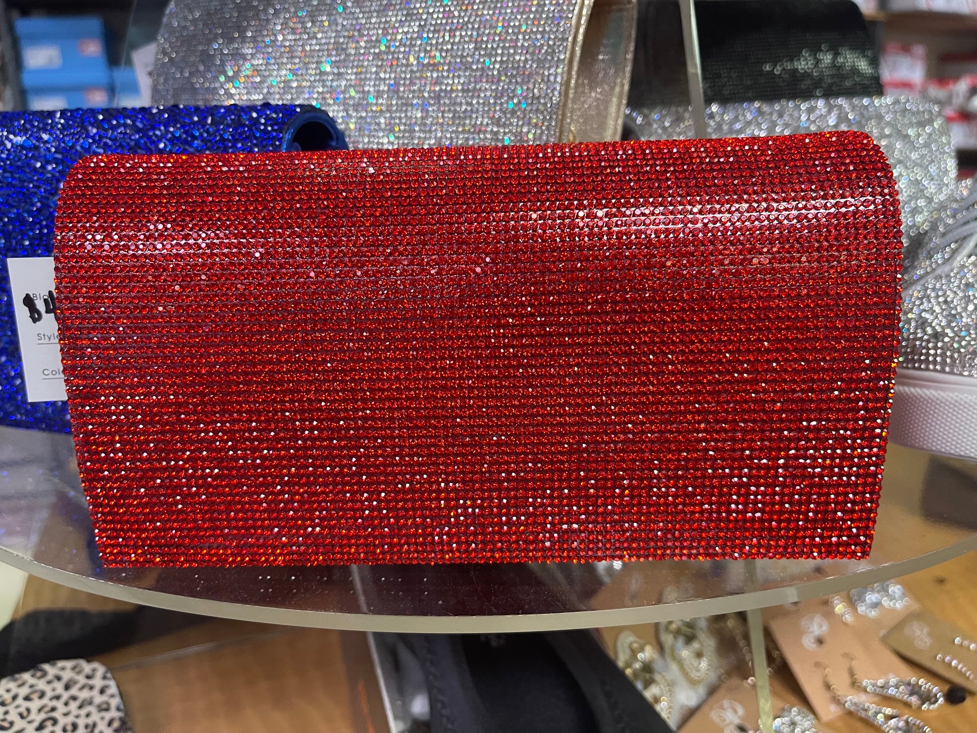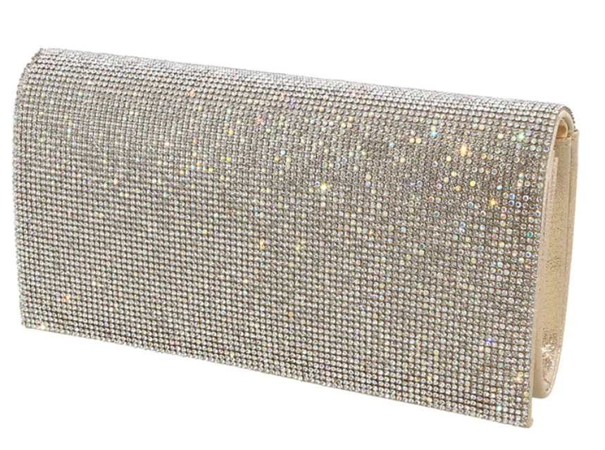 - Material: Rhinestones Embellishment, Shimmer Cloth, Magnetic Closure, Satin Lining, And Attachable Metal Shoulder Chain