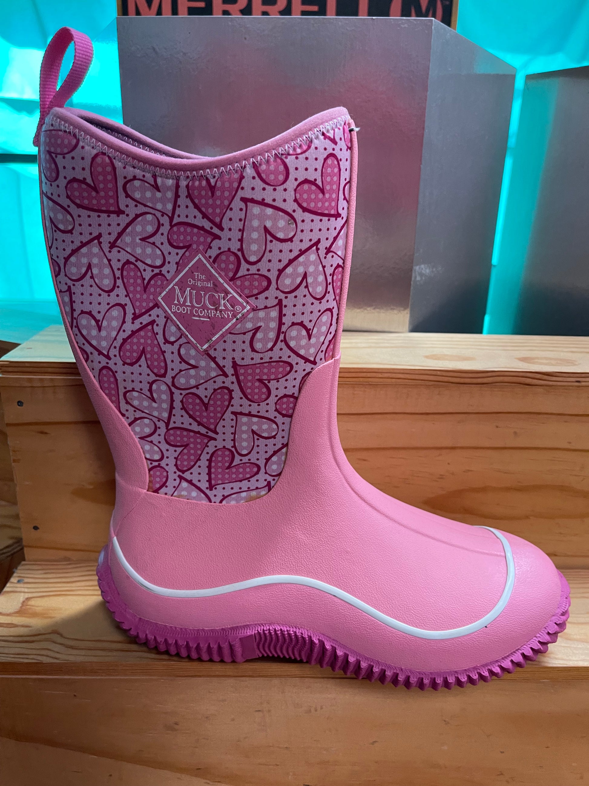 Keep children's feet protected from wet, rainy weather and muddy conditions in Muck Hale Series Multi-Season Kids' Rubber Boots. Comfort rated from subfreezing to 65 deg; F(18 deg), these children's boots are crafted from soft, flexible, heat-retaining CR Flex-Foam neoprene for reliable three season wear. The extended high-grade rubber exterior provides additional toughness and waterproofing, The durable ribbed outsole is self cleaning for stability on slick sidewalks, and it also wraps around the boot for extra grip. These neoprene boots have a back tab and wide opening that make them easy to pull on and off without fuss, while the inner PM Mesh lining keeps active feet cool and dry. These kids' boots are easy to match with just about any outfit.