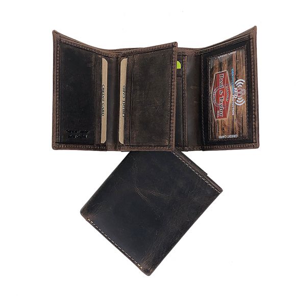 RFID Men's tri-fold wallet with multiple card slots, ID window