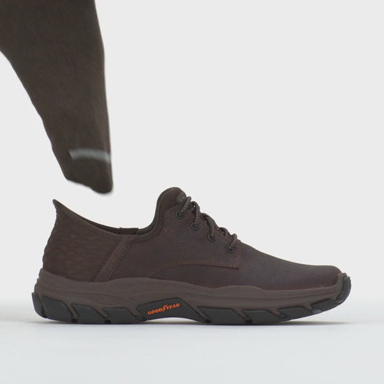 Simply step in and go wearing Skechers Hands Free Slip-ins® Relaxed Fit®: Respected - Garrett. Designed with our Heel Pillow®, this laced slip-on features a leather upper, a charcoal-infused Skechers Air-Cooled Memory Foam® insole, Goga Mat Arch™ cushioning, and an anti-slip Goodyear® Rubber Outsole.
