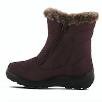 Flexus Style: Persenia Cozy and comfortable waterproof nylon booty, beautiful faux fur collar and shaft stitching detail with fashionable dual zippers, very flexible construction with direct injected light weight two color polyurethane outsole. Heel Height (approximately): 1 1/4" Platform Height (approximately):1/2” Shaft Height (approximately): 6 ½”” Circumference (approximately): 12" Features: -Very soft waterproof nylon and faux fur collar, vegan-friendly materials -Round toe silhouette and beautiful stitched shaft design -Fashionable dual zippers with a powder-coated metal zipper pull -Faux fur plush cozy textile lining -Faux fur plush cozy textile covered insole -Two color direct injection polyurethane, slip-resistant, anti-shock and flexible outsole -Imported