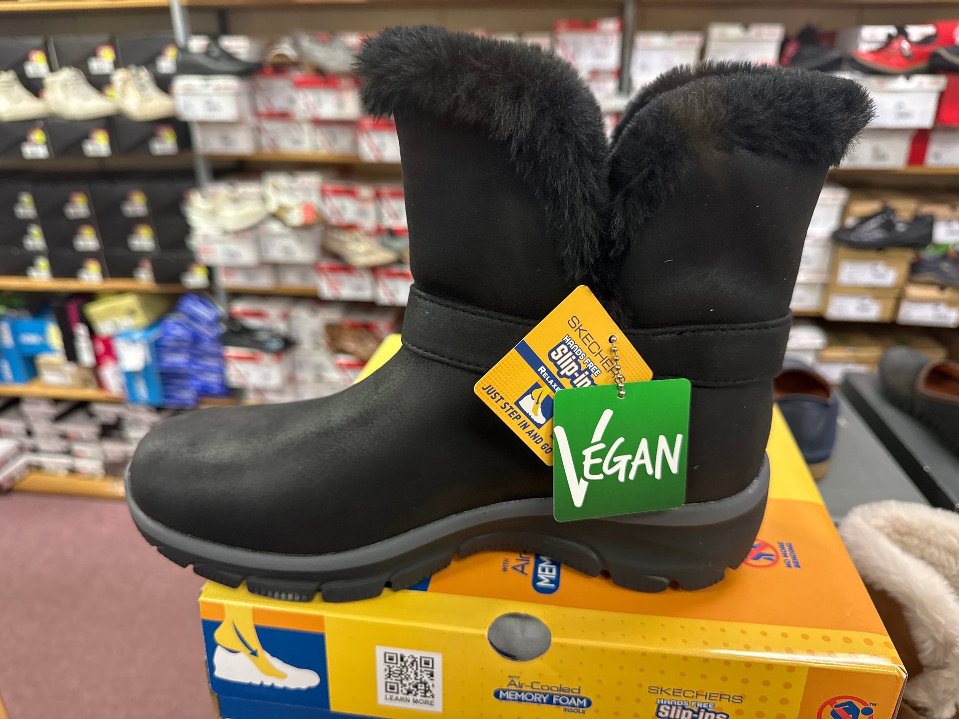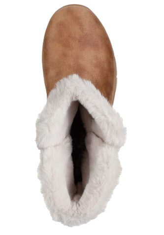 - Vegan leather upper with faux fur lining and wrap buckle detail