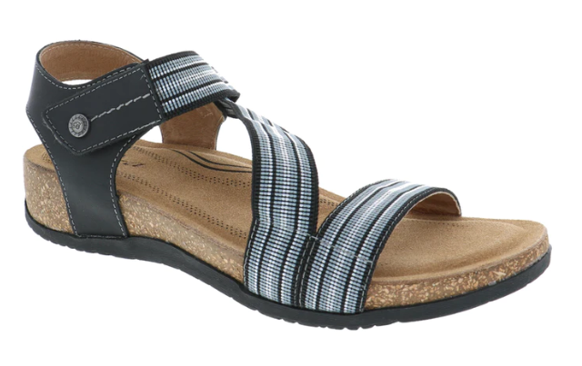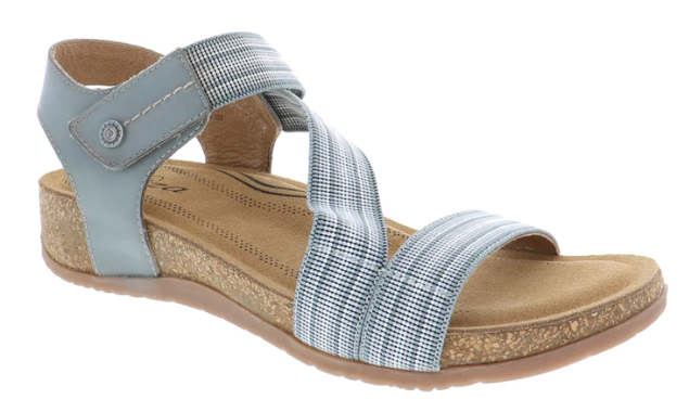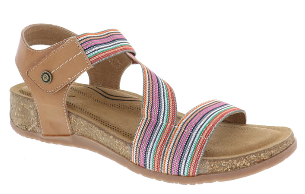Walk this way to comfort in the Teagan by Biza Shoes. This stylish women’s walking sandal features a cork and memory foam footbed with added arch support that molds to your feet like a personalized orthotic. The elasticized Velcro Z-strap design hugs the foot perfectly, keeping you moving in stylish comfort.
