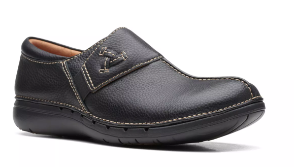 Keeping busy feet comfy when they need it most, meet our Un Loop Ave slip-on shoe. In responsibly sourced black leather for a premium feel, crafted stitching gives a heritage look, while its airy sole and leather lining keep steps light and free. The work to weekend pair you can always count on.