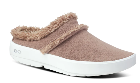 The OOcoozie provides the perfect blend of cushion and stability for both indoor lounging and quick errands out. Now in a mule style with an easy, no fuss, slip-on design for your on-the-go lifestyle. The upper is constructed with a warm vegan sherpa material that is both recyclable and machine washable. Like all OOFOS products, it has our unique one-of-a-kind OOfoam™ technology that absorbs impact, so your body doesn’t have to. Active recovery with the soft, cozy warmth you desire in a versatile hygge style.